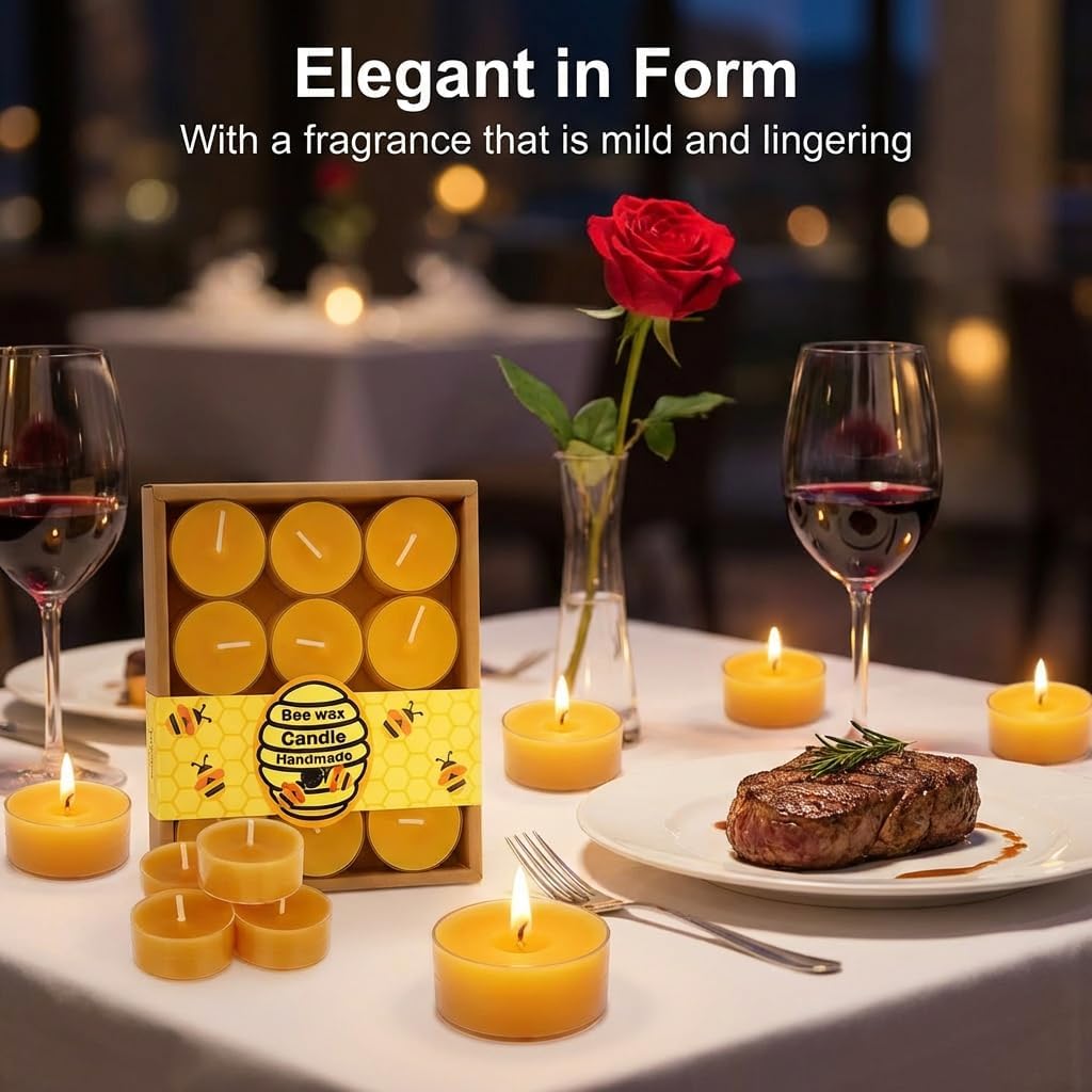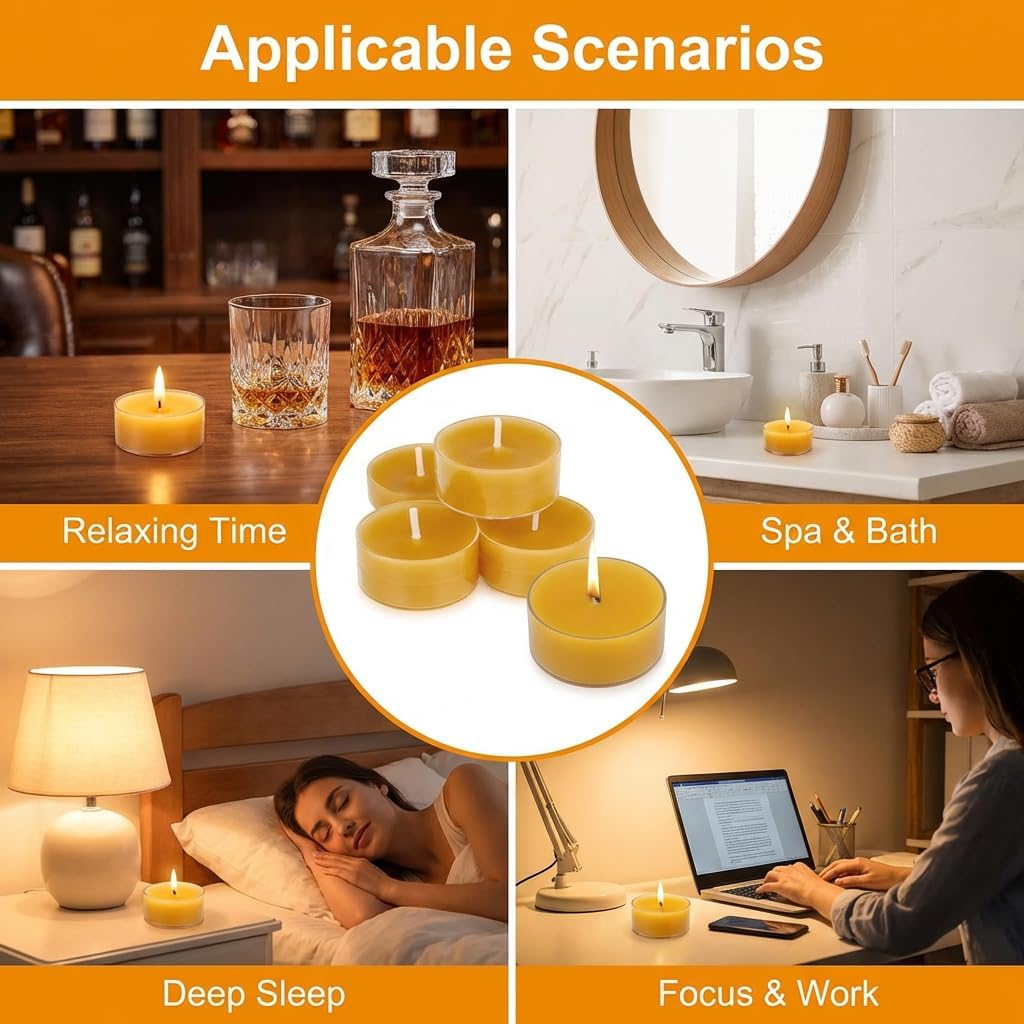 【Reliable Burn Performance】 Beeswax candle sets in this pack offer a consistent burn time of up to four hours per tea light under normal conditions. The flame burns evenly and steadily, helping maintain ambience without frequent replacement. This dependable performance makes the candles suitable for extended meals events relaxation sessions or evening gatherings where uninterrupted candlelight is desired.