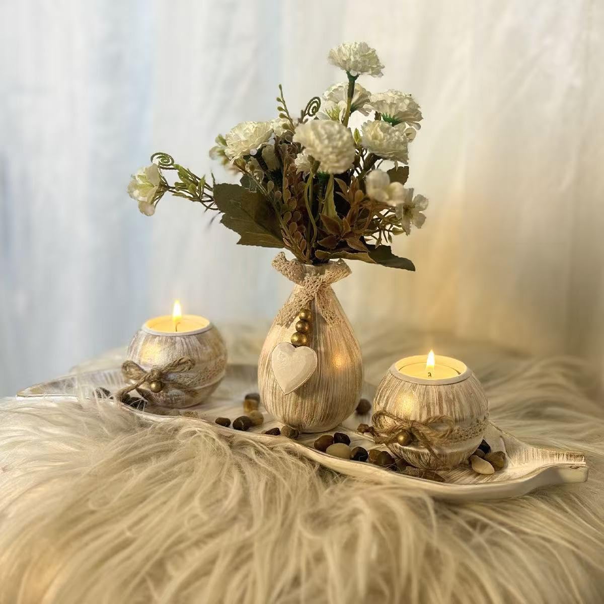 3Pcs Tealight Candle Holders with Tray Wooden Candlestick Set for Wedding Dining Table Centrepiece Decor, Gift for Mum Birthday Christmas Present Romantic Home Decor