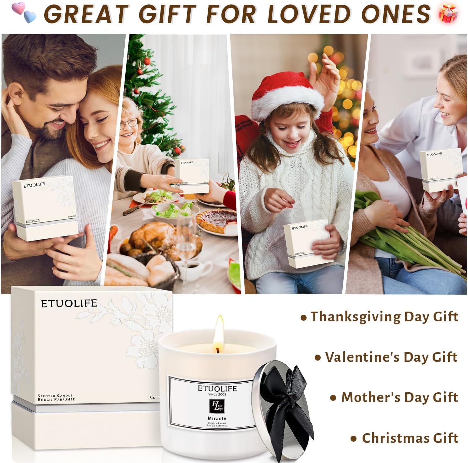 Stylish Design: This elegant and unique scented candle is pristine and pure, with each gift candle carefully packaged. Combining luxury and sophistication, this scented candle gift perfectly showcases personal charm, being both unique and stylish. Scented candles are an excellent gift for Christmas, Thanksgiving, Mother’s Day, Valentine’s Day, birthdays, graduations, celebrations, gifts, or other important occasions, and soy candle sets are the best choice to showcase your personal taste